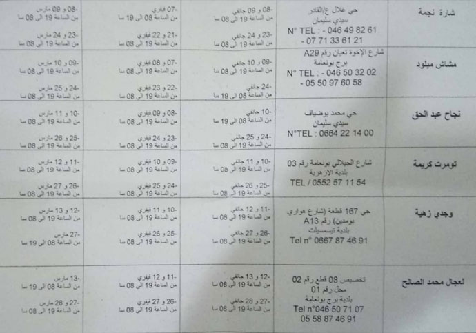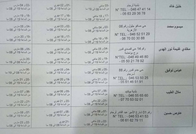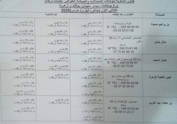 جدول مناوبة الصيادلة - الثلاثي الأول 2020