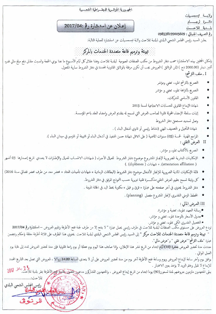 إعلان عن استشارة 2017/04