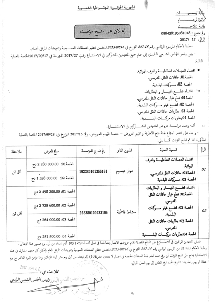 إعلان عن منح مؤقت 2017/17