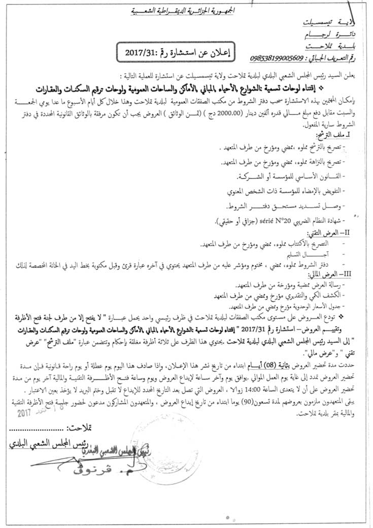 إعلان عن استشارة رقم 2017/31
